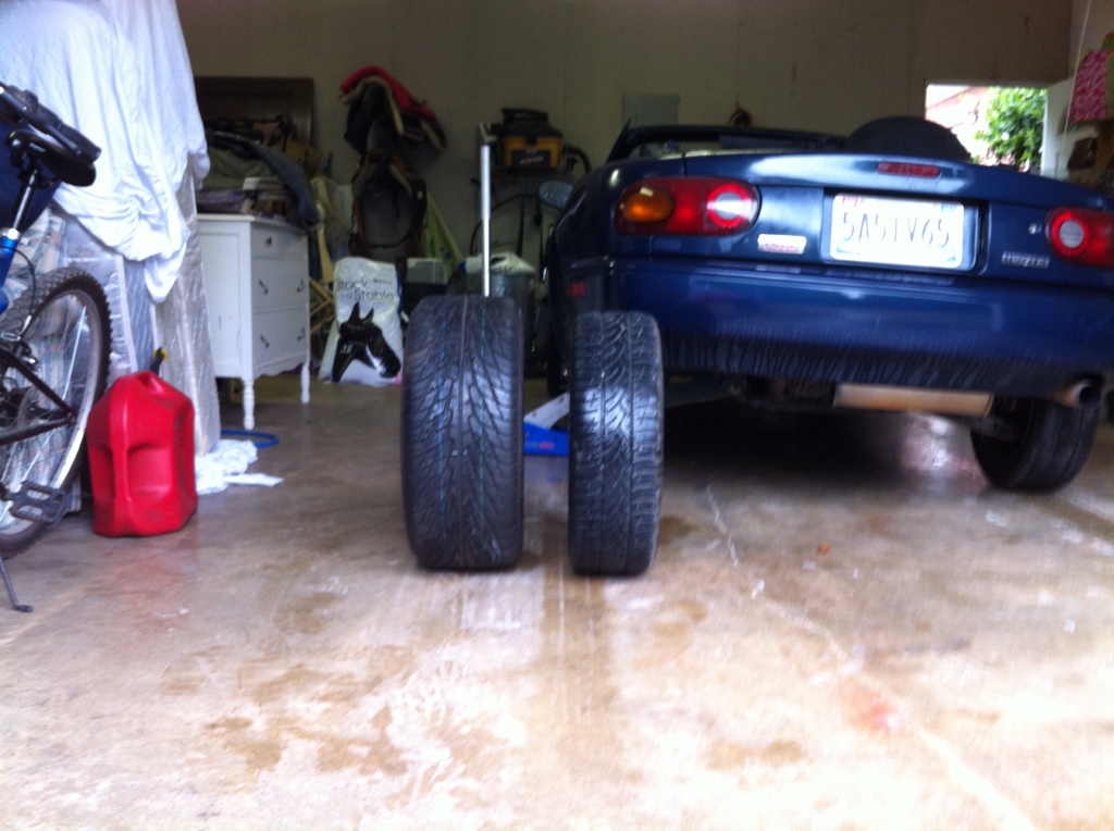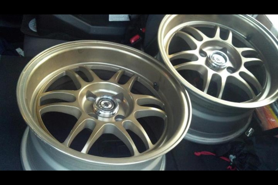 originally planned on running 15x9 with 225/45, however my friend was selling these brand new Konig 15x8 +20 Wideopens for 300$ and a some friends who own a local shop gave me brand new tires for 200$ (225/50 15) so for 500$ i can't complain.