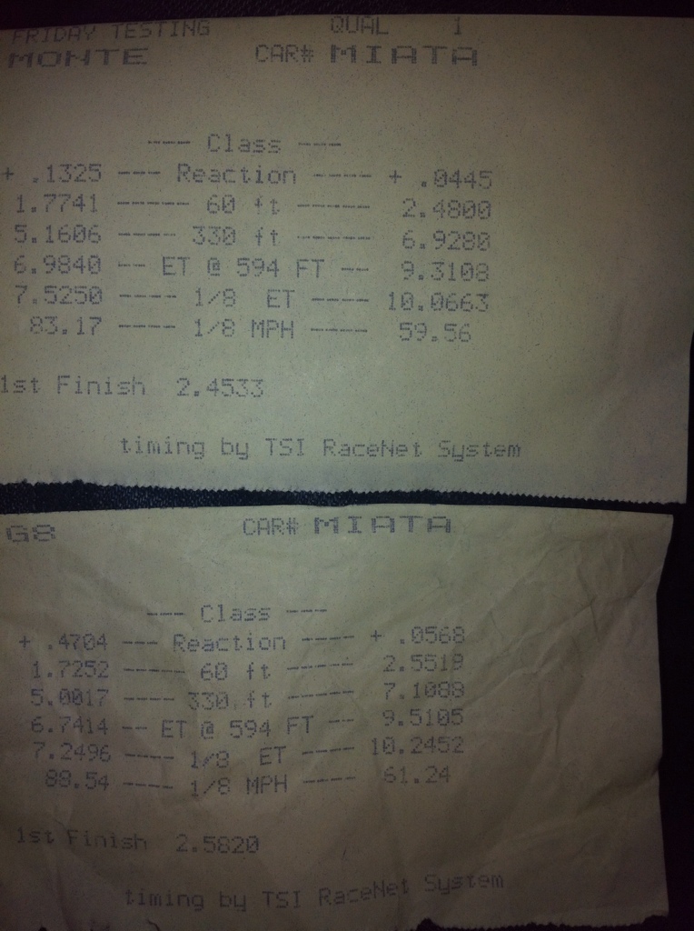 my best 60ft of the night was a 2.23 only 2 tenths slower 60ft than my 240, and same 60ft as my Speed3. however, both those cars ran low 8s.