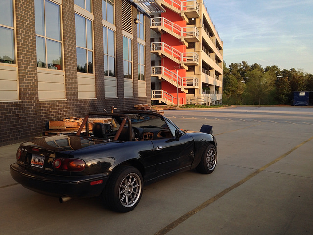 It's about time I posted up here instead of continuing to lurk the forums. I'm Kyle, and I'm new to Miatas but not to cars. I've been working on and racing VWs for about 6 years. Finally got into a RWD this December when I scooped up a 95 tan leather package car (w/ factory Torsen) and all the power options for $1000. Just a bent control arm, ratty top, and damage to the door and fender. But otherwise a solid car w/ 110k on it. I'm building it with a few friends for the $2014 Grassroots Motorsports Challenge and we are going turbo!!! Naturally then this is the place to be. I've been amazed at how active the forums and classifieds are here compared to the other Miata sites (clubroadster, and miata.net) and I'm happy to be joining the community.