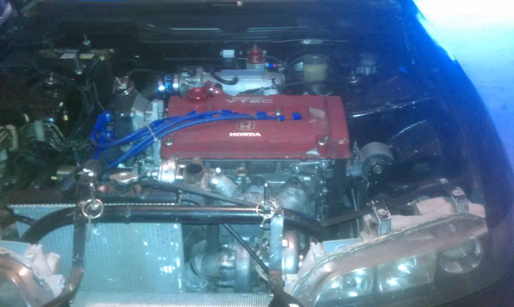 This was my 1994 Integra I bought with a wrecked front end. I put most everything I had in funding for my first run, at building with boost pricey.. I did finally get it figured out! Front end was a type r conversion. Funds ran out for the core support, so I (Quickly) fabricated something to run it. :(