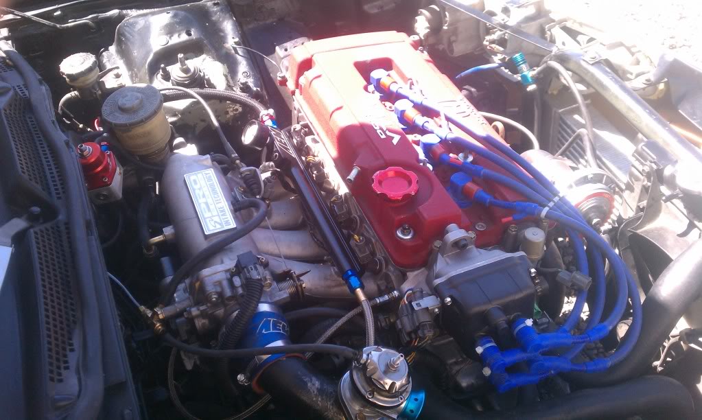 My pride and joy! Stock bottom end. 25000 miles from HMO. Head ported and polished with super tech vavle train, titainium retainers. Itr cams aem fuel rail id 1200cc injectors high impedance.(the price was right) Skunk II intake manifold, Aeromotive regulator with all stainless braided lines. Also an itr throttle body, this was tuned on chrome at 22psi never got a slip on her time