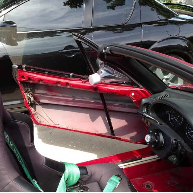 Front end is some roof flashing sheet metal and 1/4" plywood, marine grade. no interior, pair of Corbeau seats, takata harnesses, hardtop, rear underbody removed...