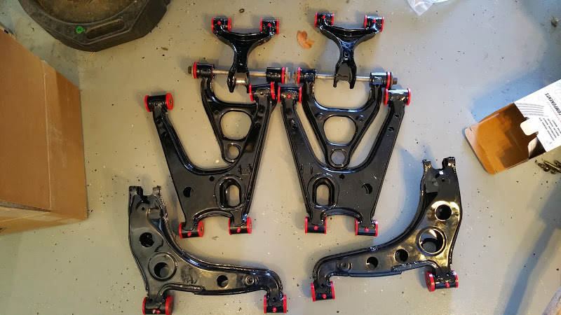 Well I placed an order for xidas back in October of last year. While I was waiting I decided to do bushings and got the control arms tapped for zerks and powder coated. Sexy.