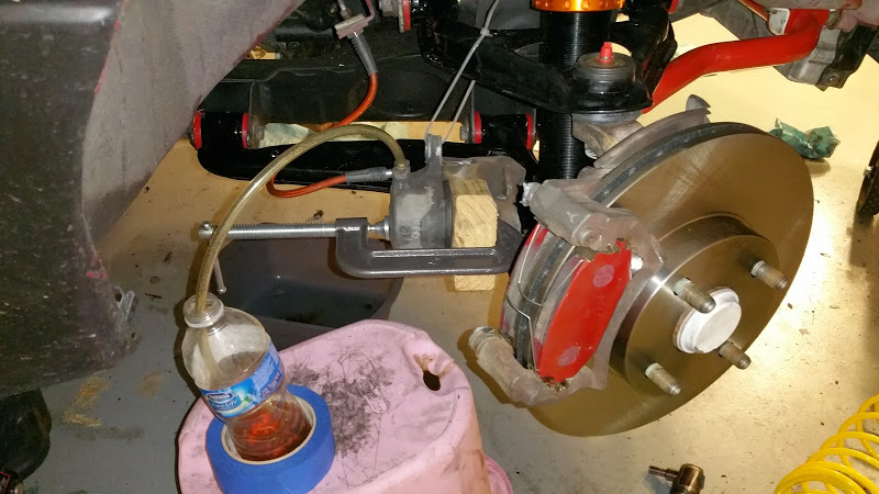 Also discovered that when you do the 1.8 conversion, you swap the front brakes, which I knew, but I didnt realize it puts the bleed port on the brake on the bottom... so now I have this fun way of bleeding the front brakes.