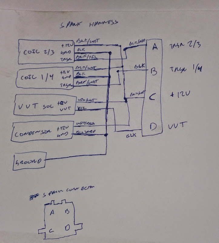 I did the same to the spark plug harness to add the VVT solenoid and wire the condensor directly into this harness.