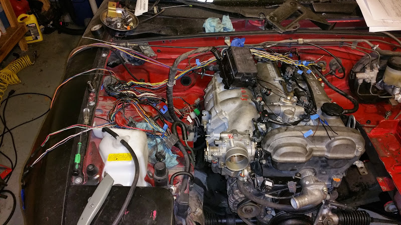 With the motor in I can now start working on the TPS, IAC, Cam and Crank signal lines, and adapt the Spark Plug and Fuel injector plugs for my new wiring.