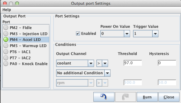 Also, are these settings correct for tuner studio? Im not sure what the hysteresis is? What value does it need to be set to?