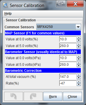 I confirmed that i selected the MPX4250 - which is the 2.5 bar sensor.