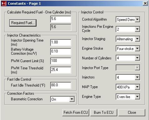 ^^ Mine is exactly like pauls. Req fuel is 5.6 with 2 Injections per engine cycle. But if I want to have 4 injections per engine cycle, the Reqfuel (greyed out value) becomes 0.5 of that, hence 2.8. Then, if you simply scale the map 2, it doesn't work anymore and the engine is hunting. I tried lowering the values but it keeps on chocking.