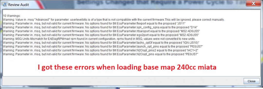 When I try to Open the base map (91 miata 240cc injectors.msq) that is provided at DIYautotune I get the following error: