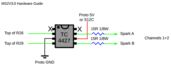 One thing I've just realised... I'm using 10 ohm resistors in place of 15s there (it was what I had, and I assumed the function of the resistors is just to limit inrush current to the mosfet gate inside the coils).