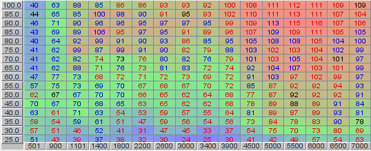 Now the top rows start to look continuous at least. But what the fat spot at 1500rpm/90% is caused by I have no idea.