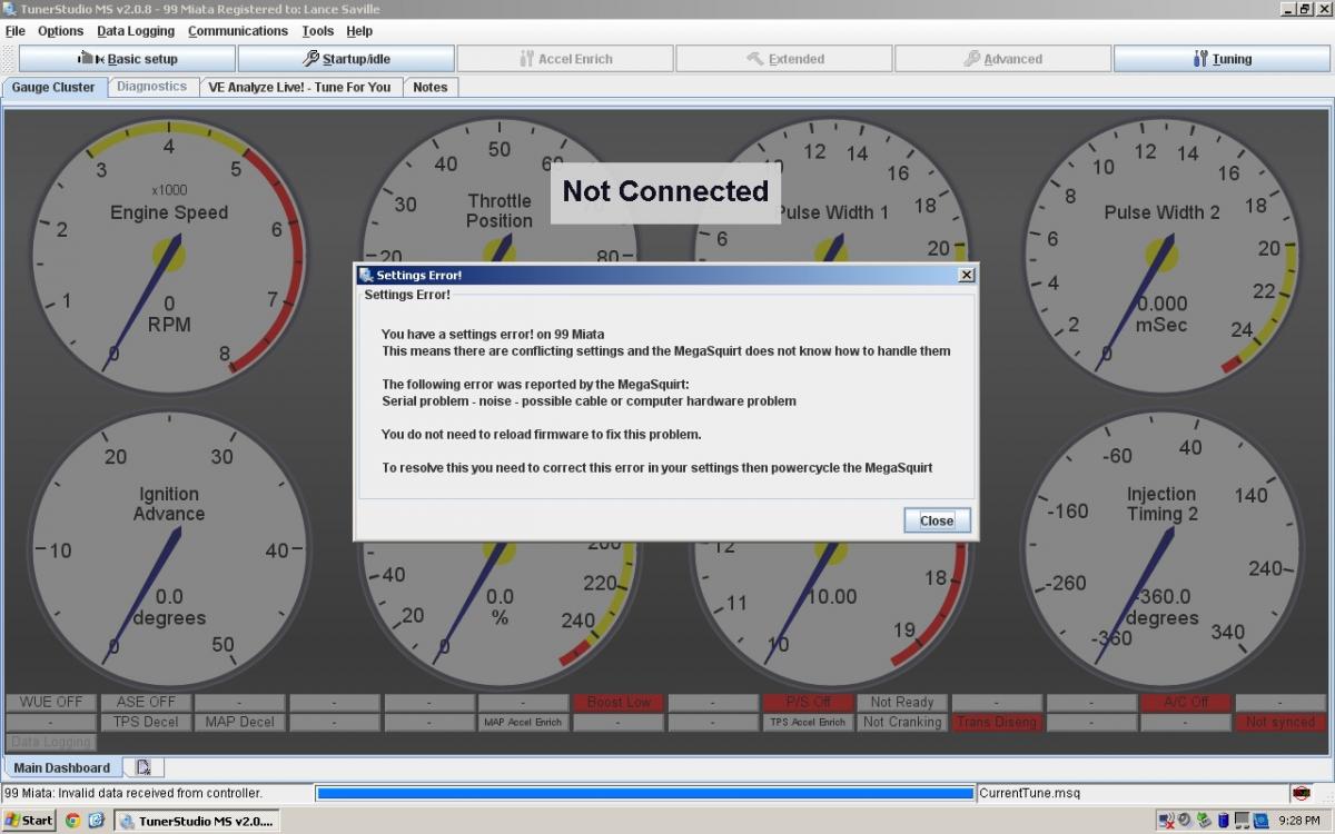Here's the latest - Picked up a new usb-serial adapter from radio shack, tried to connect tunerstudio to ecu and I got this -