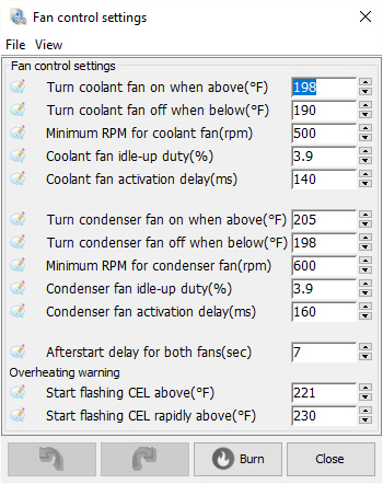 2) Neither of my fans will kick on. I even tried turning on the AC to see if I could get the condenser fan to go. Nothing. I've posted a picture of my fan settings.