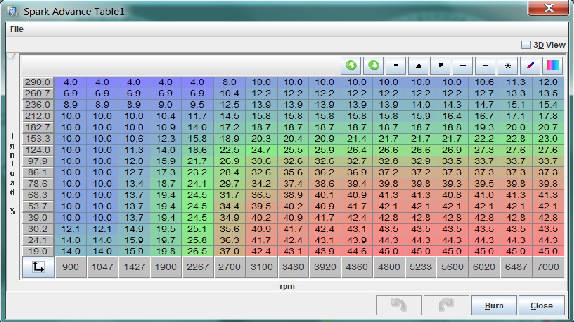 I don't have the laptop I did the tuning with me at the moment. I'll post both maps for comparison. I used the dyno to be able to tune the spark and upper boost fuel levels. I figured that way a could hold RPM and boost is certain areas I knew we're off a bit to tune them safely and legally (the street isn't a place to tune those areas.