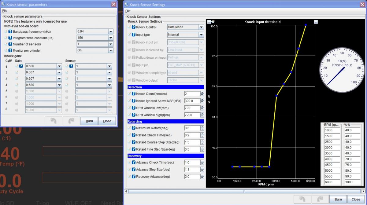 djp: Would you mind sharing your knock sensor settings with me for comparison, I must have something set differently than yours? (I'm using the stock MSM sensor)