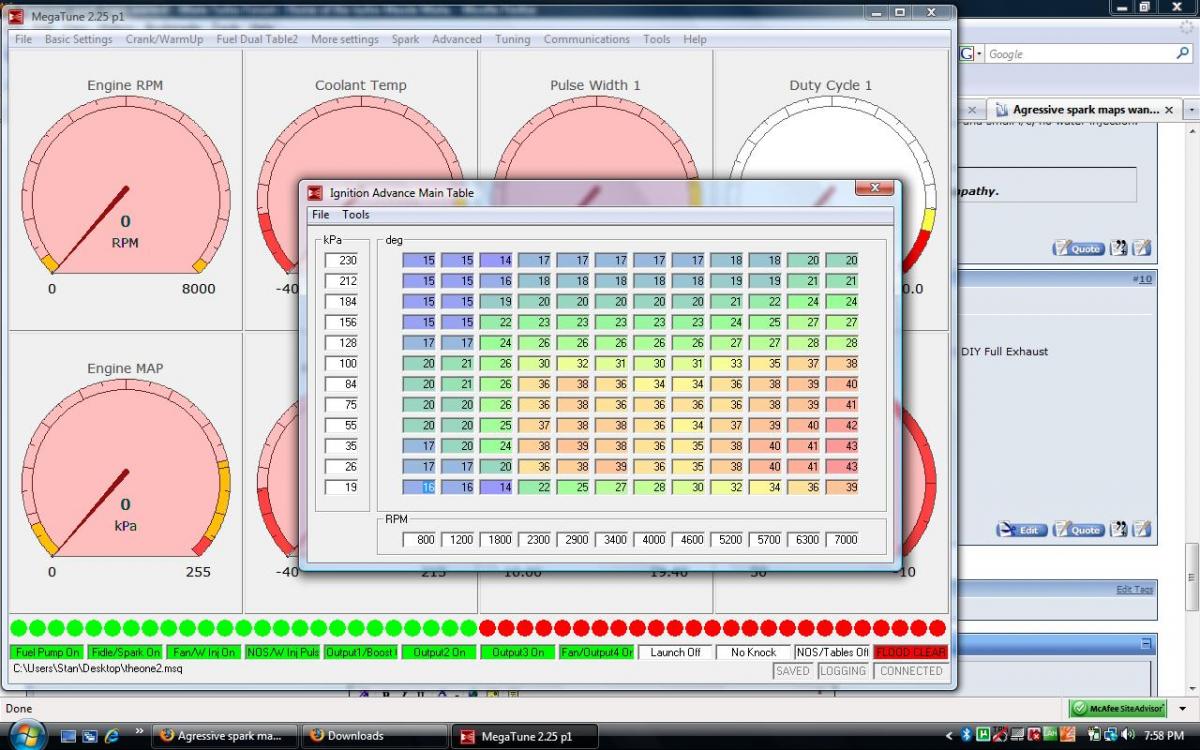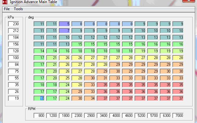 I made 252wtq on a DD, then removed a 2.5" exhaust gasket restriction and the car came alive and I had to tune fuel again. Basically, this car is undoubtedly making 300WTQ+ on a gay-dude Dynojet. Each cell 2* back from MBT for safety. I can run 91-octane on this table too with no detonation heard through the cans in any cell.