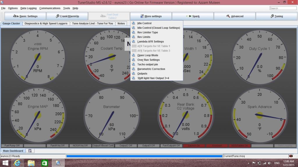 hi, I have a MSPNP in my 1.6 eunos and I want to run autotune on tunerstudio, I did some research and figured out I have to set up my a/f ratio targets.