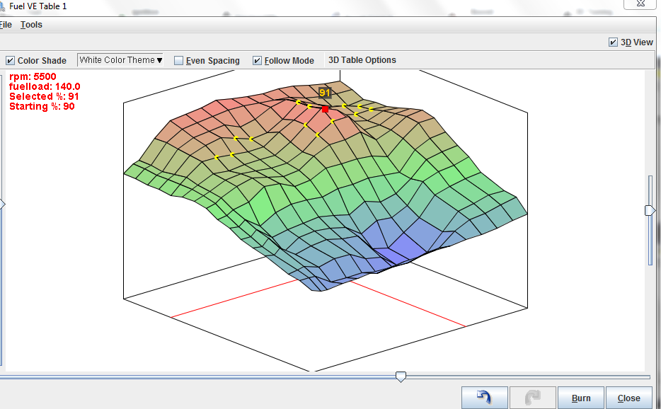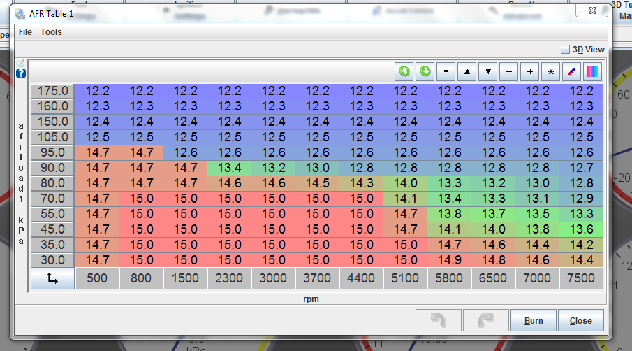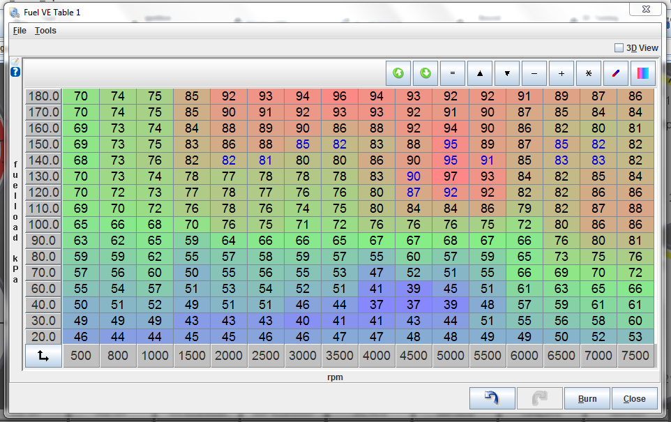 I'm only running 9-10 psi at a max of 7000 RPM's. So I'm not hitting the last two load points on the 3D graph.