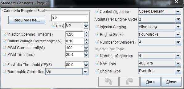 2). Can someone please print screen their "engine constants" window with 460cc inj on a 1.8l?