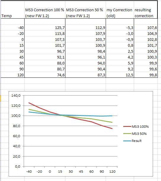 I made myself an Excel spreadsheet, with the standard values of the MAT correction, the 50% correction values and my old correction empirical values...