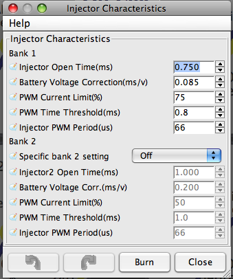 I was wondering if anyone had any insight into the injector parameters for these injectors.