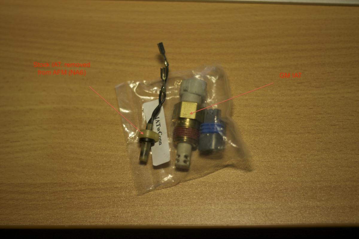 I've bought the GM IAT and will eventually use it, but thinking the stock sensor (in the photo) might be better to use; in that it's heaps smaller easier to insulate, plastic body doesn't absorb and transfer bonnet-soaked-heat into the sensor as much as the GM metal body sensor.