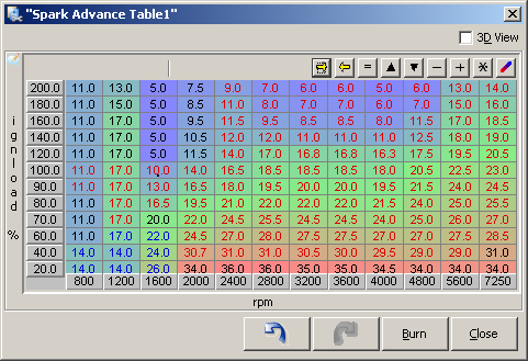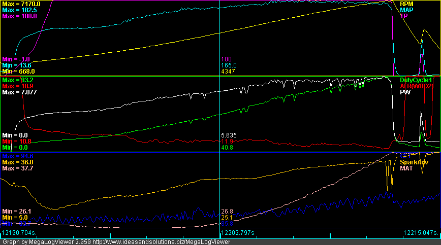 The basemap was pretty retarded (in both ways) so it took quite some time to get any power out of the engine. First run with how we got the car gave 200rwhp and we massively increased timing and stopped at 225rwhp.