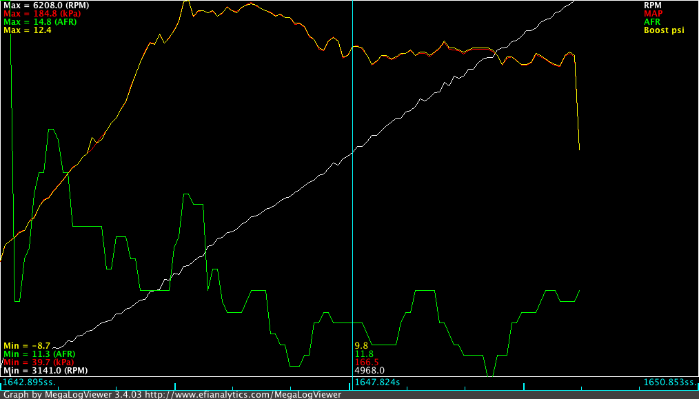 I am not terribly upset with how I am holding boost to redline as you will see in the following graphs, but it does seem that I am getting some oscillation as I go up in RPMs. Also, in lower gear pulls I barely ever touch my targets. Heavy oscillation. I don't have any logs of that though.