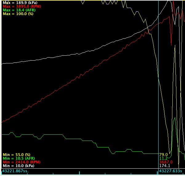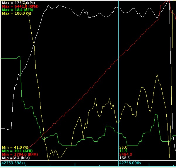 Superimposing my old pull on this one tells me that I am actually making LESS power. Mind you that was a 5th gear pull and this was a 4th gear pull but still. Surprised. Either way it feels pretty good.