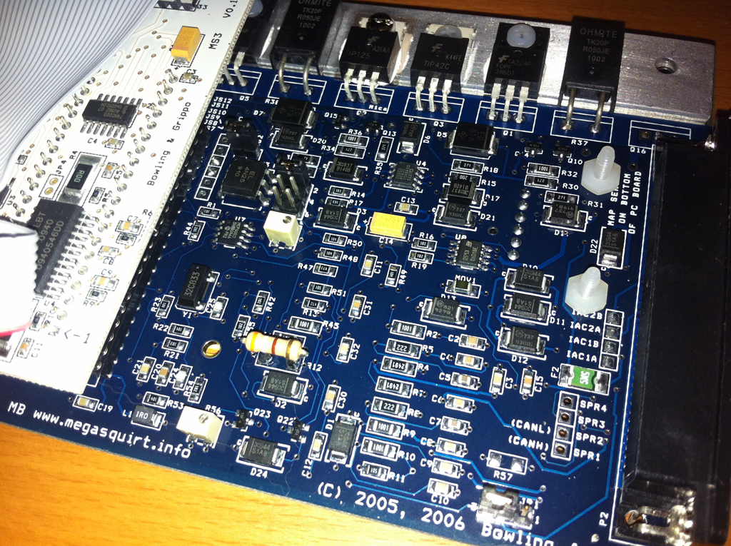 The SMD boards are mostly robot assembled, but all of the through hole parts (such as the TO parts on the heatsink) are hand soldered in-house, here in Suwanee, GA. The stepper jumper wires should also be in place (4 wires) as well as the jumper from JS9 to S12C (which provides +12V to the stepper chip). If the ECU has no non-standard mods, there will also be a jumper from JS10 to the center pin of Q16. Q16 won't be populated though.