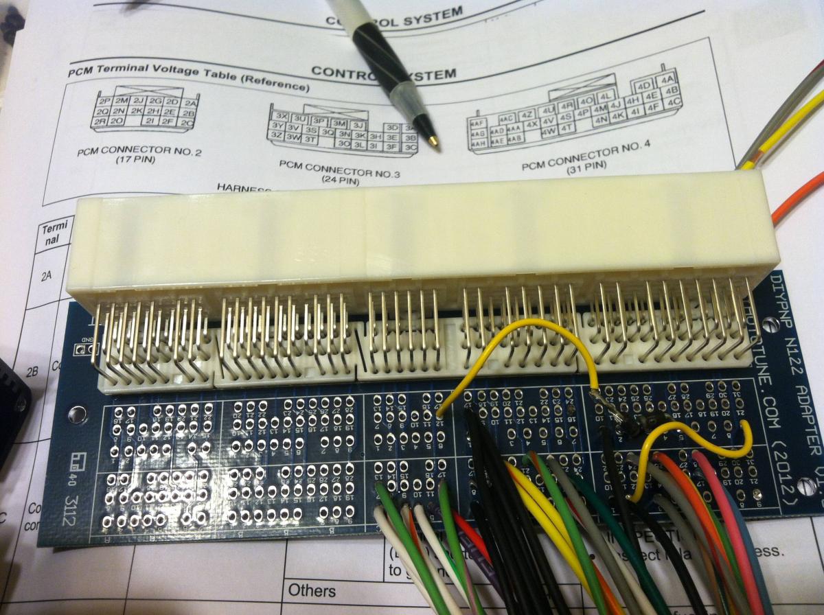 DIYAutoTune's new NipponDenso 122 pin DIYBOB is REALLY nice. I love the fact that they put in two rows of pin connectors, which helped tremendously when wiring up the 1N4001s flyback diodes for the IAC and VVT circuits.