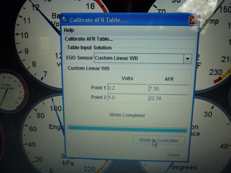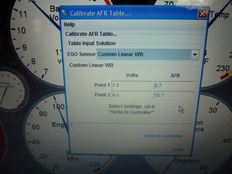 Hi, I'm having trouble getting the LC-1 gauge and Megasquirt to read the same. All the grounding is done per instructions. It has ben suggested that I adjust the AFR table to make the readings match. I go to Tools - Calibrate AFR Table - Choose Custom Wide Band. Then Adjust the settings