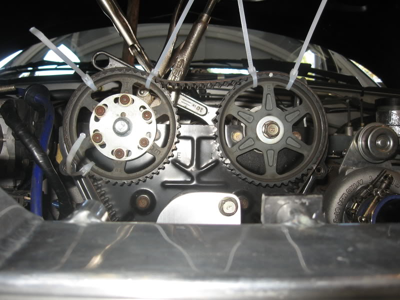Oh yeah, and I've used those fancy "paper clips" that will pinch a large stack of papers to hold a TB on a gear. Used them on my dads V6 interference Isuzu Trooper. Only one per gear and it worked well.