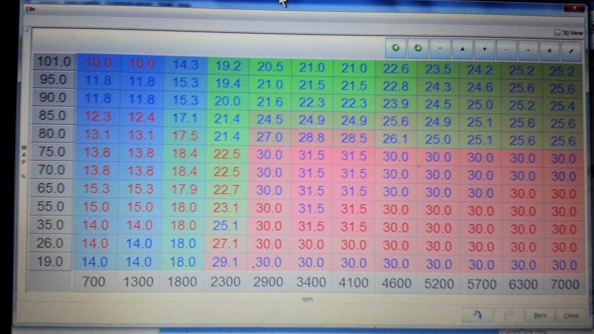 OK i must be slow in the head. I cant get the base 99-00 map to download off diy's site and hustler your map looks more agressive than the one I run on the 9.5-1 1.6. Can some one please post a picture of there map and I will just fill in the blanks in my map.