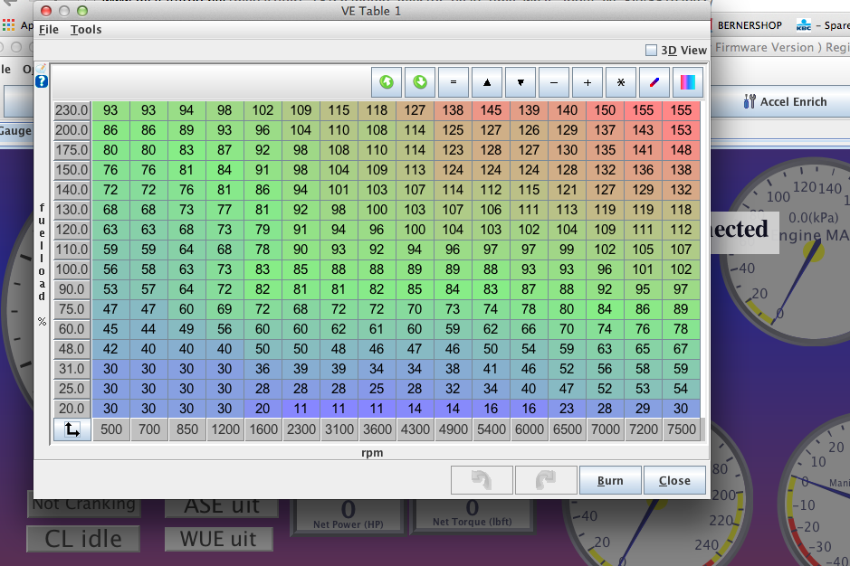 We upgrade to blue 540cc injectors, an assume a Required Fuel value of 2.25, and a dead time of 0.95
