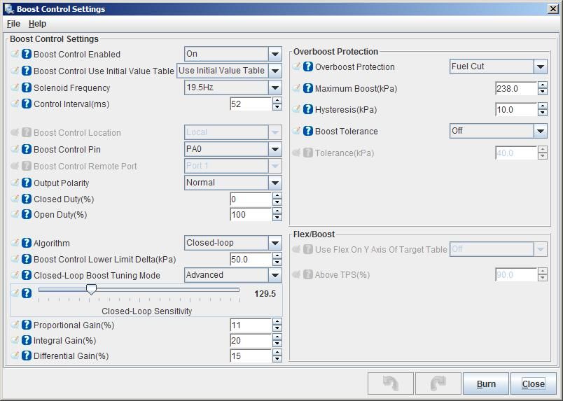 The target is 15psi and I hit it initially and then taper off. The boost duty has room to help that out significantly. Which gain will help with this?