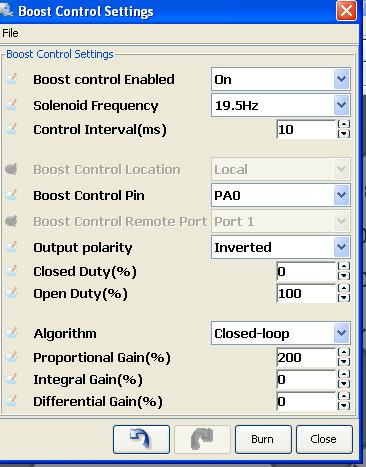 I have open loop boost working fine, and has been for some time now. I am getting fed up with the changes I get from ambient temps changing. I attempted to get closed loop control dialed in today with no luck. No matter where I put the P term I would overshoot like crazy hitting boost cut.