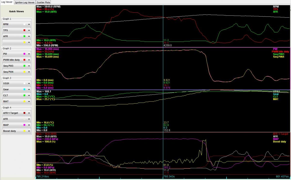 WOT'ing at different RPMs. Note how it hits full boost quickly with no overshoots even at different RPMs: