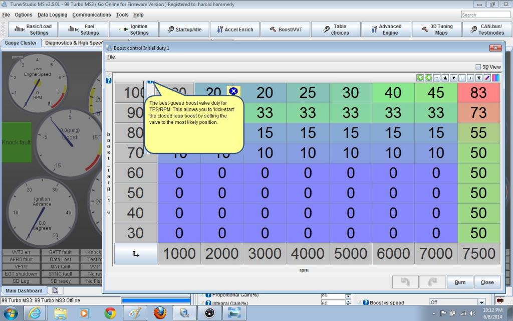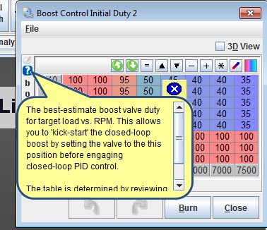 Take a look at the boost control initial duty table dot, that indicates where the throttle and rpm's are relative to it.