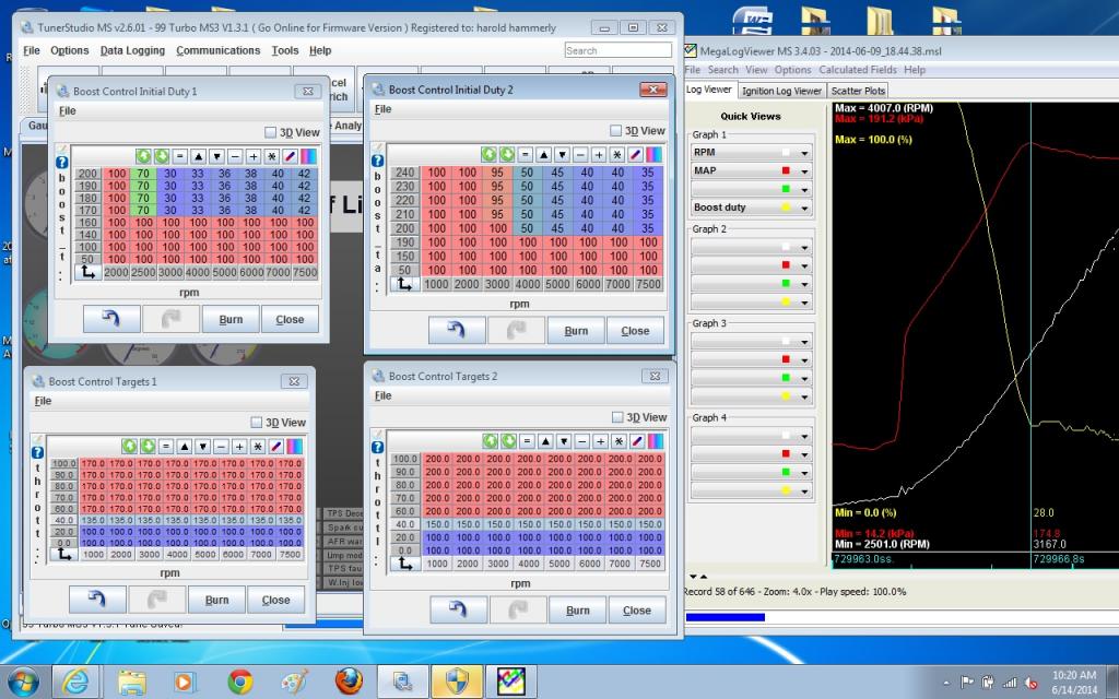 The second screen shot is with the engine not running 60% throttle and the boost control initial duty table sows throttle 30%with the correct rpm.