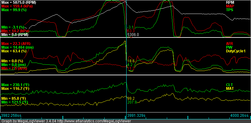 CLT and also MAT seem to be following the TPS to a large degree. Looks more like TPS than MAP to me. It HAS to be sensor ground.
