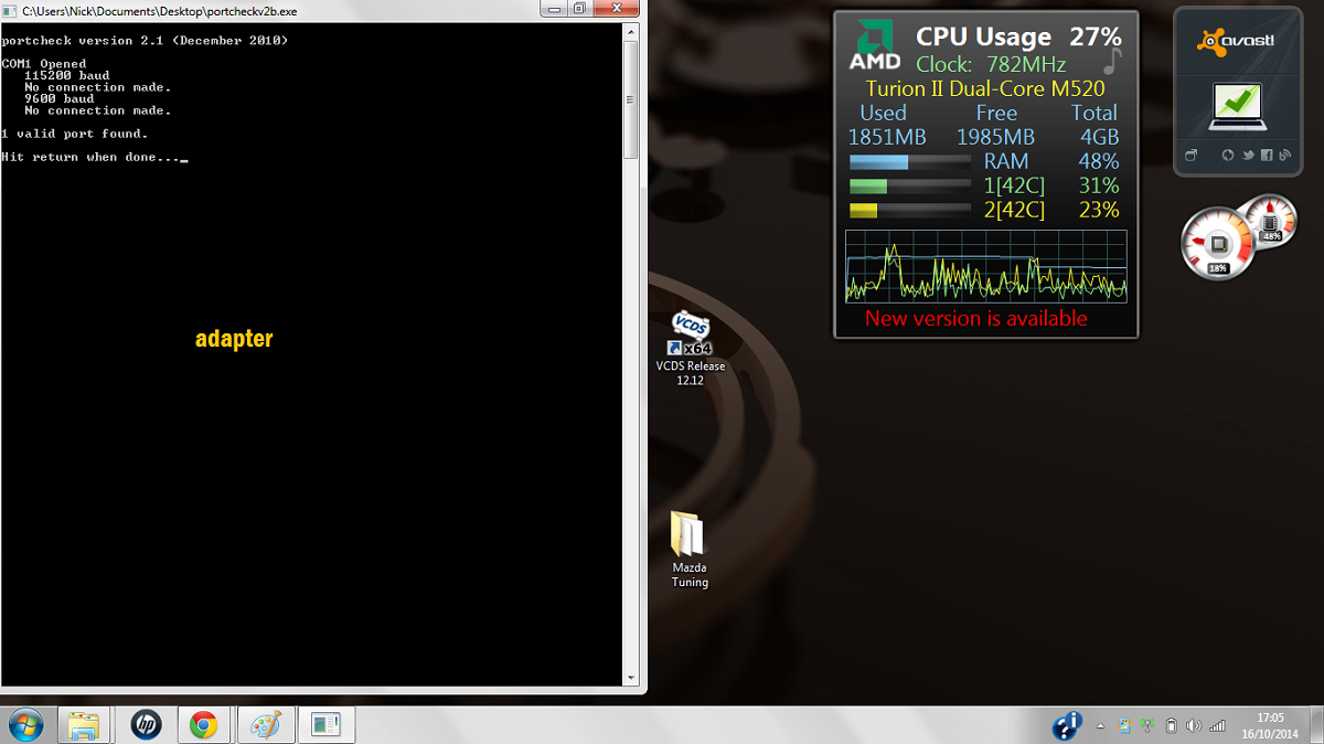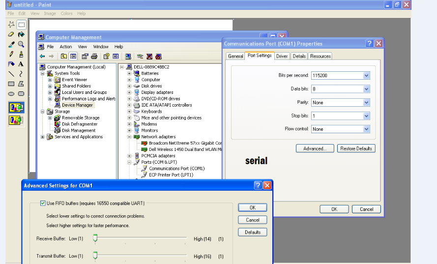 I have a laptop using just serial connection, and another laptop with a usb to serial adapter, i have attached four pictures, they have been labelled