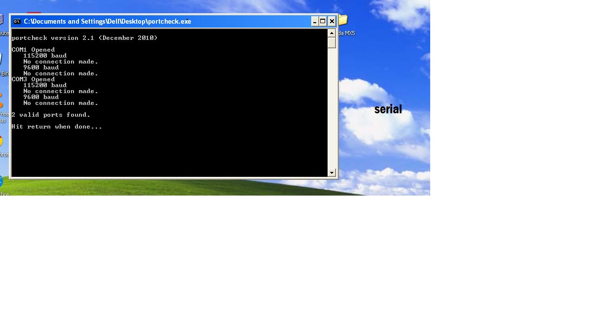 The plain serial cable should work though. Anything running on the laptop with the serial port that could be hogging the port?