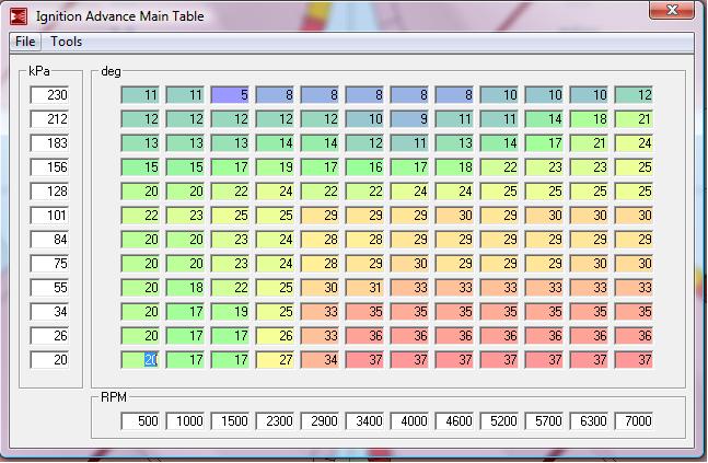 Also, I have NOT tested the boosted cells yet as I am turboless. If anyone N/A wants to test it I'd like to hear what happens. It should be safe for anyone N/A as the headwork I have done means I can't run as much timing as someone with the same engine and a stock head. If someone boosted wants to try it, do so at your own risk. I can email it to anyone that wants to try it. (I don't know how to host it).