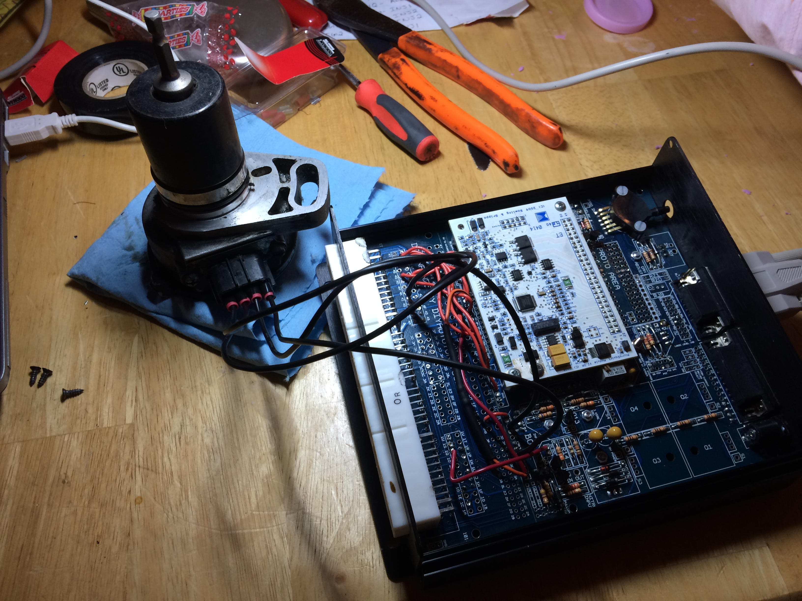 So i decided to dig out the spare CAS i have and wire it up directly to the module on the bench. See picture below for awesome test benching. It does the same thing here on the bench. so that leaves a setting, bad DIY board/component or some up with the megasquirt card. I emailed diyautotune hoping that they might be able to give me some diagnostic info for testing it or get lucky and know what is up already. I really hope it is nothing major.