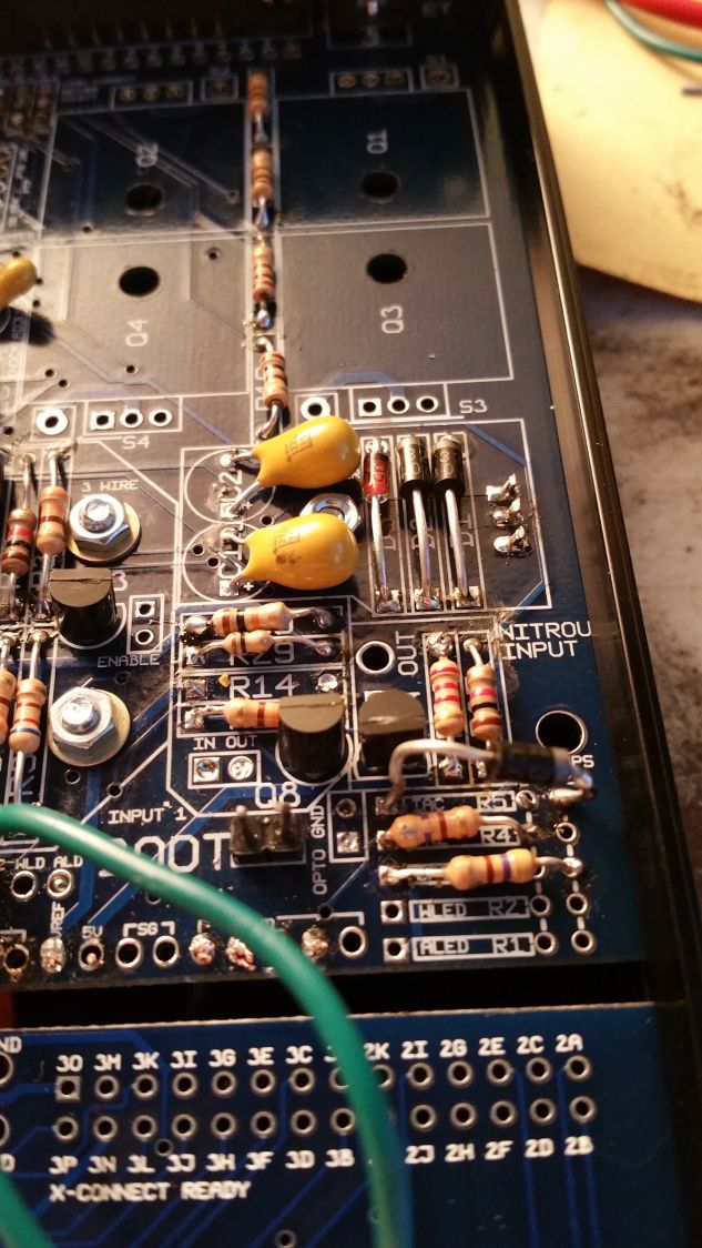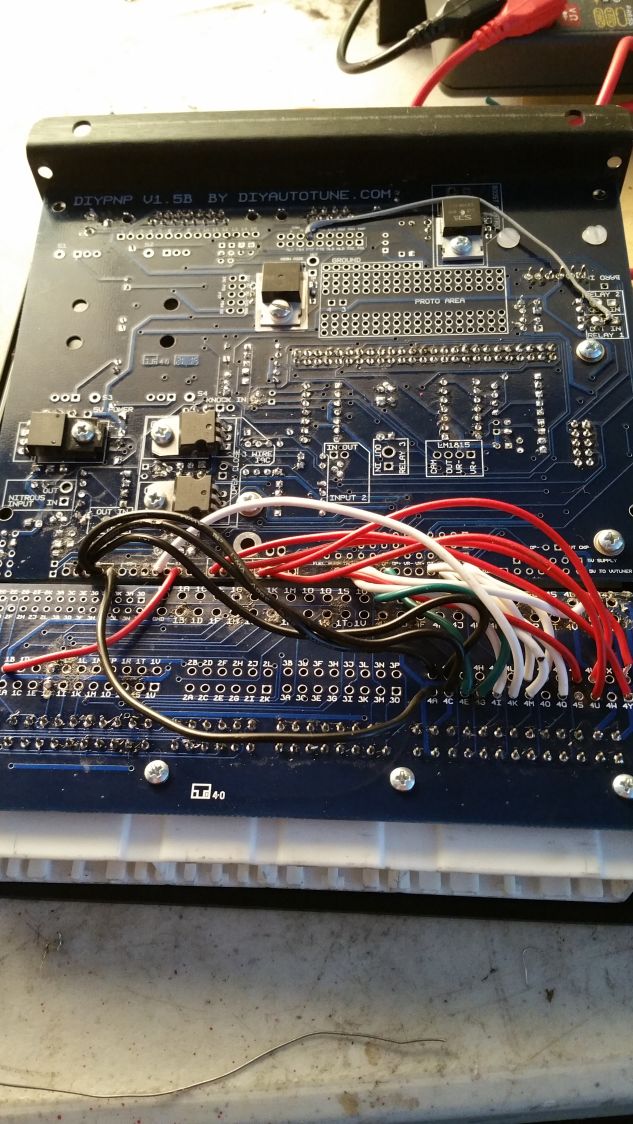 Here's some pics of my assembly. I left out the radiator fan and A/C pullups, but those should not be crucial to getting a spark. I've also got mixed information on weather or not I have to jump the ignition pins near the top of the board.