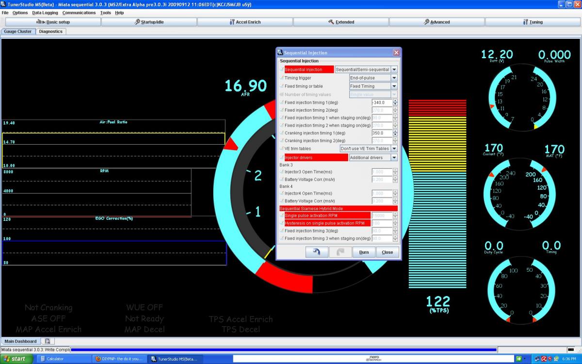 The Car is running, without MAF, Stock Coils, Techedge WB, Miata TPS (automatic).