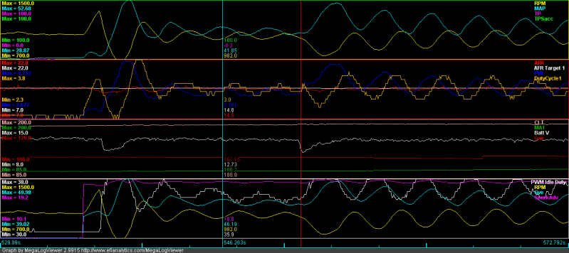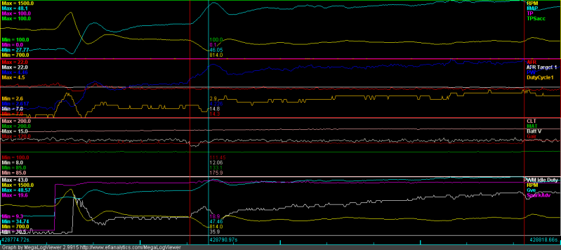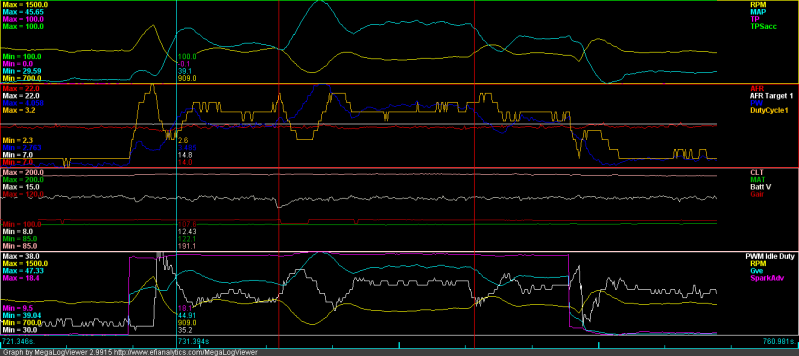 Note: I closed the idle screw by 1 turn, so the PID code would bring down the RPM rise from the idle solenoids.
