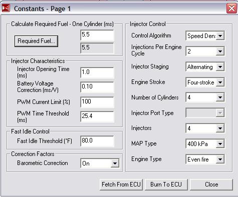 :edit: Also req fuel is correct @ 5.5 although I just remembered I never changed the Injector Characteristics settings for low impedance but can't remember if I need to with a resistor pack.. Time to read the MegaManual on that one..